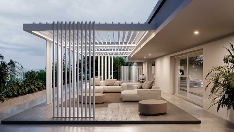 Le pergole bioclimatiche BT Italian Outdoor sono pensate per trasformare terrazzi, attici e giardini in spazi da vivere con maggiore continuità e comfort. Le strutture in alluminio e acciaio inox, il design minimale e il sistema a lamelle orientabili permettono di gestire luce, aria e protezione dagli agenti atmosferici con un’estetica pulita e contemporanea.