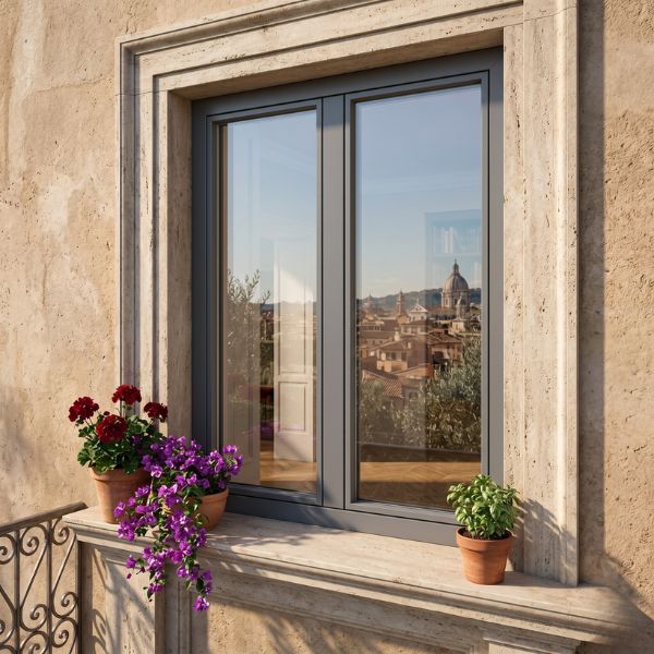 FIN-Project Slim-line: finestra dal design moderno e minimale con estetica complanare e profili ultra-sottili. Il sistema unisce l’eleganza del rivestimento in alluminio su entrambi i lati alla tecnologia del nucleo in PVC saldato, garantendo prestazioni isolanti superiori. La tecnica del vetro incollato assicura massima stabilità strutturale e una superficie vetrata più ampia per ambienti estremamente luminosi.