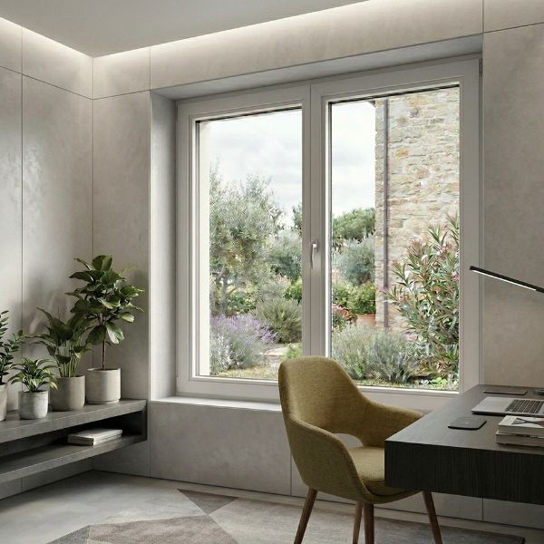 Il cuore tecnologico di Slim-line risiede nel vetro sempre incollato al profilo, una tecnica che conferisce stabilità strutturale superiore, riduce la necessità di manutenzione e migliora la sicurezza antieffrazione. Realizzata in PVC di alta qualità (Classe A), la finestra è priva di schiume espanse e risulta riciclabile al 100%, garantendo una scelta ecosostenibile per la tua abitazione.