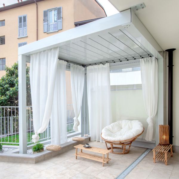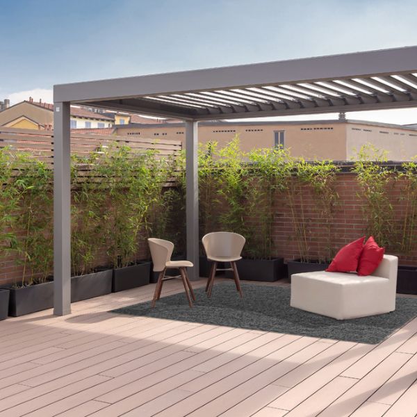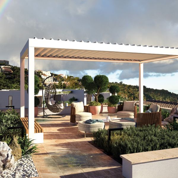 La R620 Pergoklima è la pergola bioclimatica d’eccellenza, progettata per creare un microclima perfetto in modo naturale. Grazie alle lamelle in alluminio orientabili, permette di regolare l’intensità della luce e la ventilazione con estrema precisione. Caratterizzata da un design registrato dalle linee pulite, questa struttura combina estetica minimale e prestazioni tecniche superiori, offrendo un ambiente protetto, silenzioso e tecnologicamente avanzato per il tuo living all’aperto.