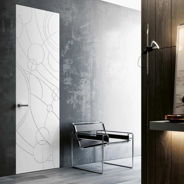 La collezione Costellazioni nasce dall’estro dell’artista Elio Garis per celebrare l’Anno Internazionale dell’Astronomia. I modelli principali: Altair, Cassiopea, Auriga, Pegaso, Andromeda e Vega presentano decori stilizzati realizzati con incisioni di alta precisione su superfici laccate. La forza di questa linea risiede nel contrasto tra la solidità della struttura e la leggerezza dei disegni geometrici (linee, cerchi e punti) che evocano il mito. Disponibile in versione piena, con inserti in vetro o come intera lastra in cristallo, la collezione permette una continuità estetica totale grazie alle boiserie coordinate e ai rivestimenti per porte blindate.