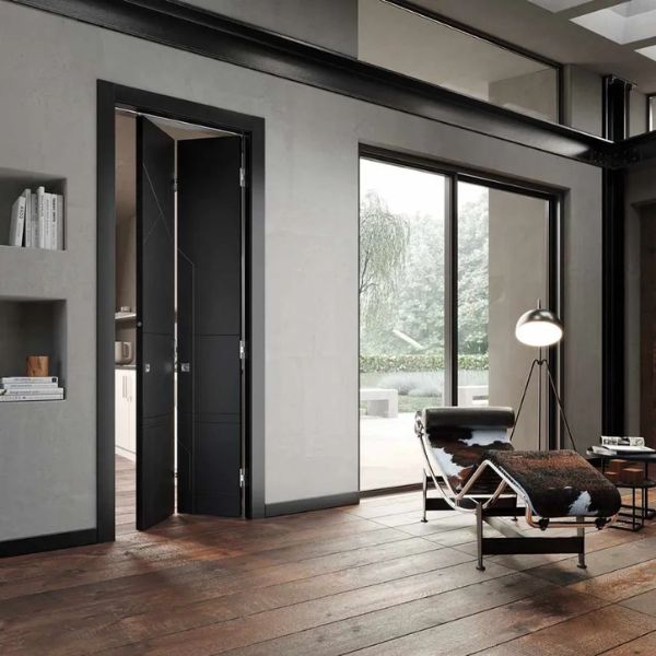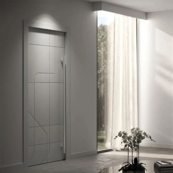 La collezione MetroMap trasforma l’anta in un elemento narrativo ispirato all’urbanistica di città come Londra, Parigi, New York e Milano. Le “linee della metro” sono realizzate tramite incisioni a pantografo che attraversano l’intera superficie, creando un pattern geometrico dinamico e moderno. Le porte sono laccate a mano con tre mani di vernice di alta qualità e costruite su una struttura tamburata con bordatura Iper 4 Board su tutti i lati. Come le altre linee di alta gamma, anche la MetroMap è equipaggiata con il telaio TKT complanare, cerniere a scomparsa e serratura magnetica. Il comfort è garantito dal sistema acustico Acu Plus e dalla protezione igienica No-Germs