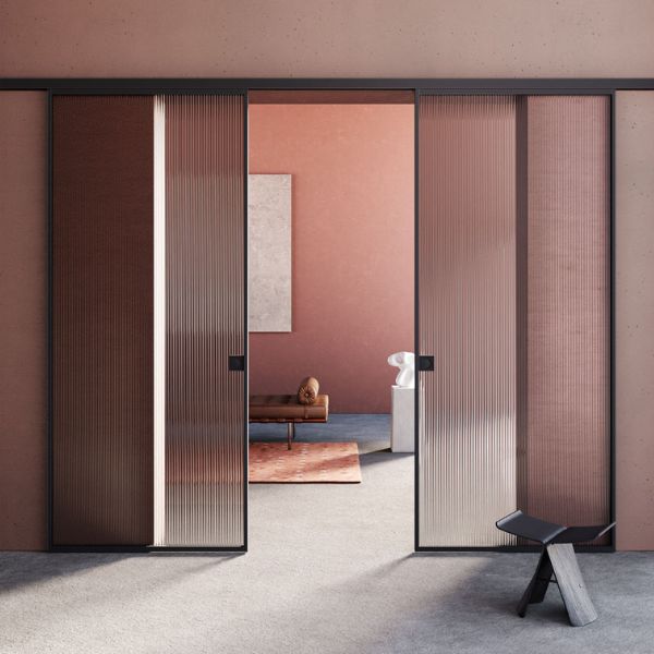 Il vero valore aggiunto tecnico è la varietà dei sistemi di apertura: la tecnologia roto-traslante permette all’anta di ruotare e traslare simultaneamente, dimezzando l’ingombro del raggio di apertura e rendendola ideale per spazi ristretti. Insieme alle aperture a bilico e scorrevoli, questi sistemi sono equipaggiati con ferramenta di precisione, come serrature magnetiche e guarnizioni acustiche. Ogni modello è personalizzabile in termini di finiture (essenze, RAL, laminati), garantendo una risposta tecnica precisa a ogni esigenza architettonica.