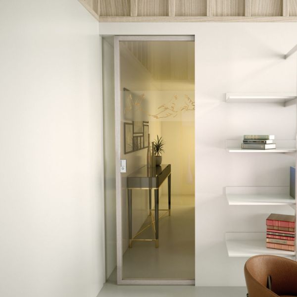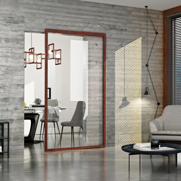 La linea Kikka rappresenta l’equilibrio perfetto tra minimalismo chic e calore domestico. È una soluzione unica sul mercato: un’anta in vetro strutturale da 8 mm incorniciata da un bordo in legno listellare di appena 40×40 mm. Questa innovazione permette di avere la trasparenza e la luminosità tipiche delle porte “tutto vetro”, mantenendo però la possibilità di coordinare le finiture lignee o laccate con il resto degli arredi e delle porte cieche della casa. È il design che “spazza via il superfluo”, ideale per ambienti contemporanei che cercano una personalità distinta senza appesantire gli spazi.