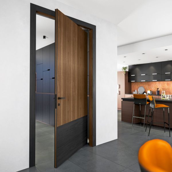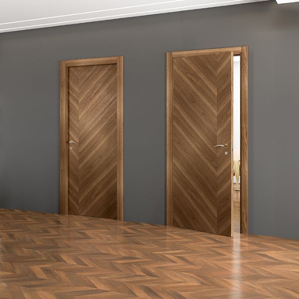 La linea Madera nasce per chi ama il legno nella sua sostanza. È una collezione che punta sulla qualità materica e sull’estetica naturale, utilizzando l’impiallacciatura in legno precomposto. Questa scelta tecnica garantisce due vantaggi fondamentali: un’assoluta uniformità delle venature tra tutte le porte della casa e una tonalità che rimane identica negli anni, senza le variazioni tipiche delle essenze tradizionali. Con ante arricchite da intarsi artigianali e contrasti cromatici, le porte Madera trasformano il calore del legno in un elemento d’arredo contemporaneo e accessibile.