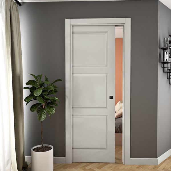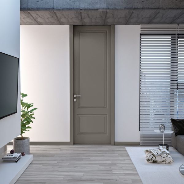La porta Talèa è disponibile in finitura laccata, sia liscia che goffrata, con la possibilità di scegliere tra tutti i colori RAL.