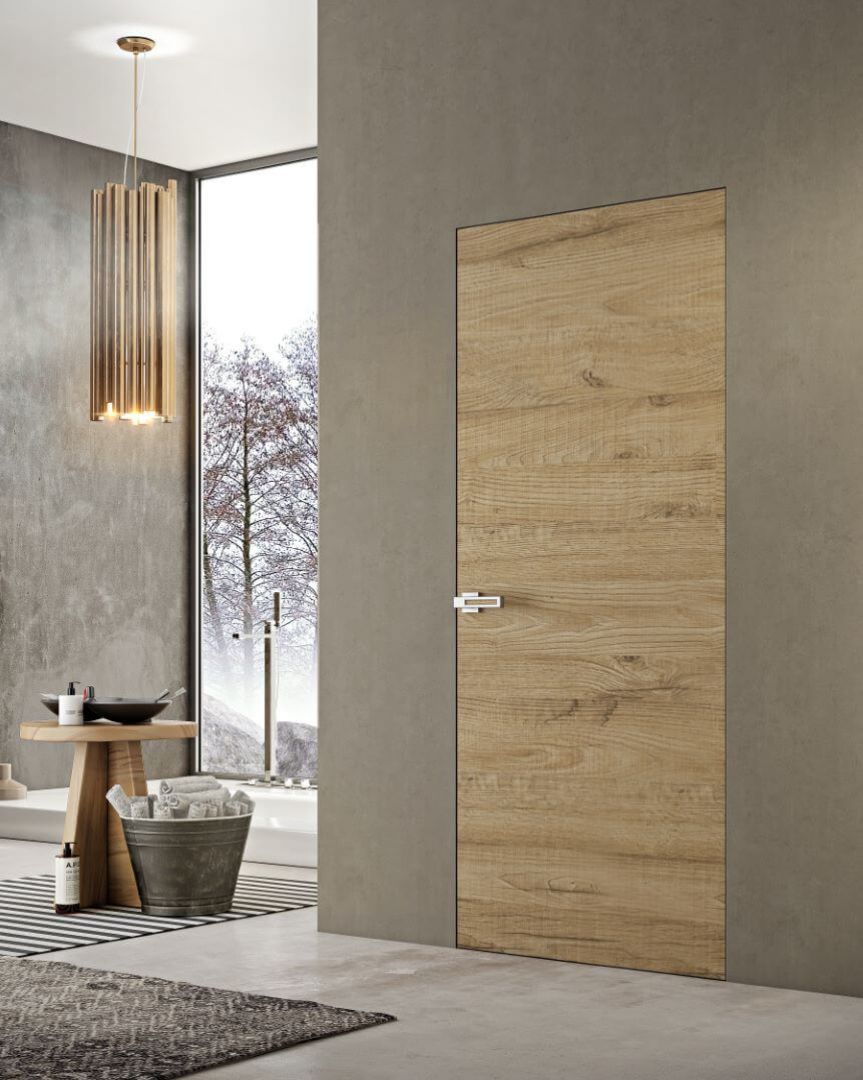 Porta moderna 4D quercia naturale, design sobrio e altissima resistenza superficiale.