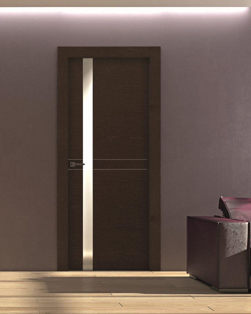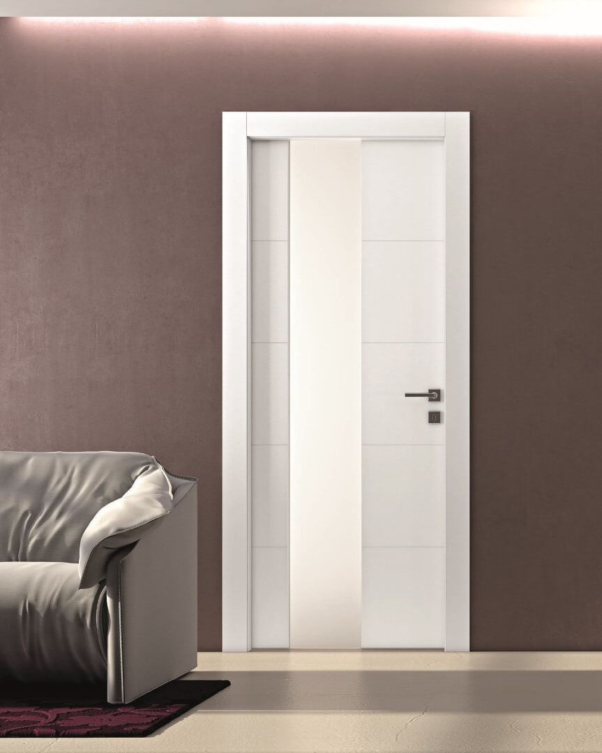 Porta con pannello in vetro personalizzabile, trasparenze e decori su misura.